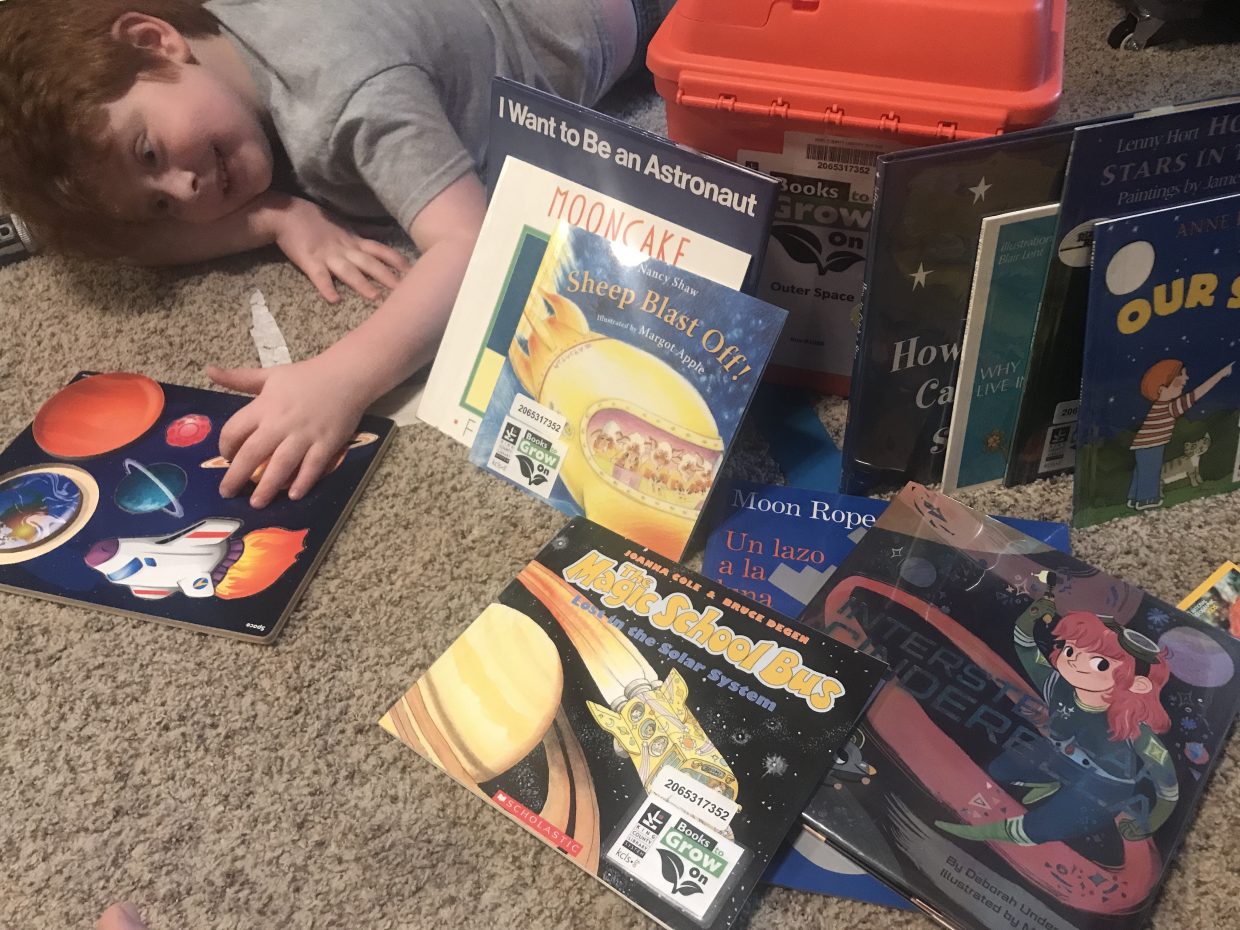 From our library are really neat! This one is about space! It comes with a dozen books, a puzzle, a movie, and some CDs!