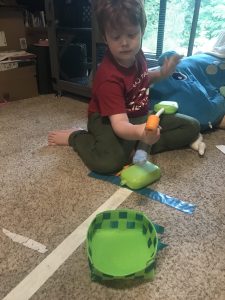 In the first we made a peg board where you have to catch a ball that is dropped through the series of pegs. How they bounce off the pegs determines where the ball drops! It’s tricky!