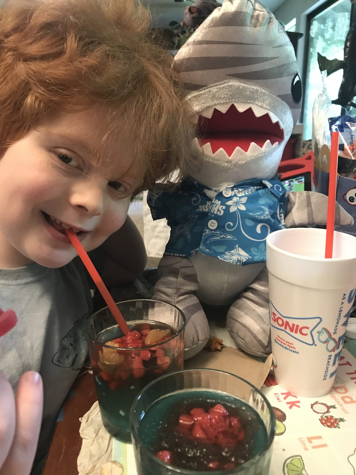 You and your shark friend go to Sonic and get a Shark Slushie! Complete with gummy ocean animals!