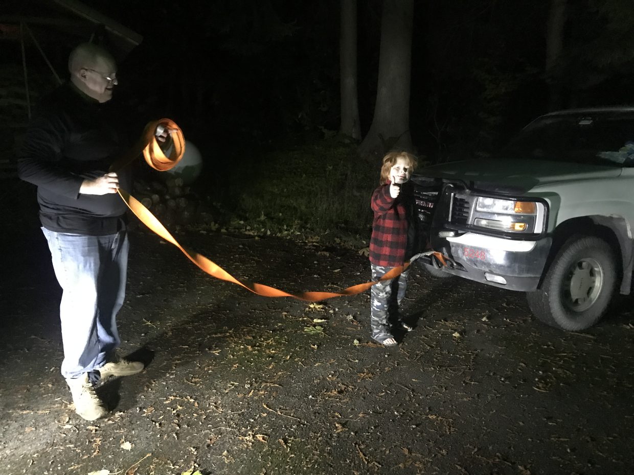 He was pretty close to home when the truck decided to stop, but Mom and I had to tow him back!