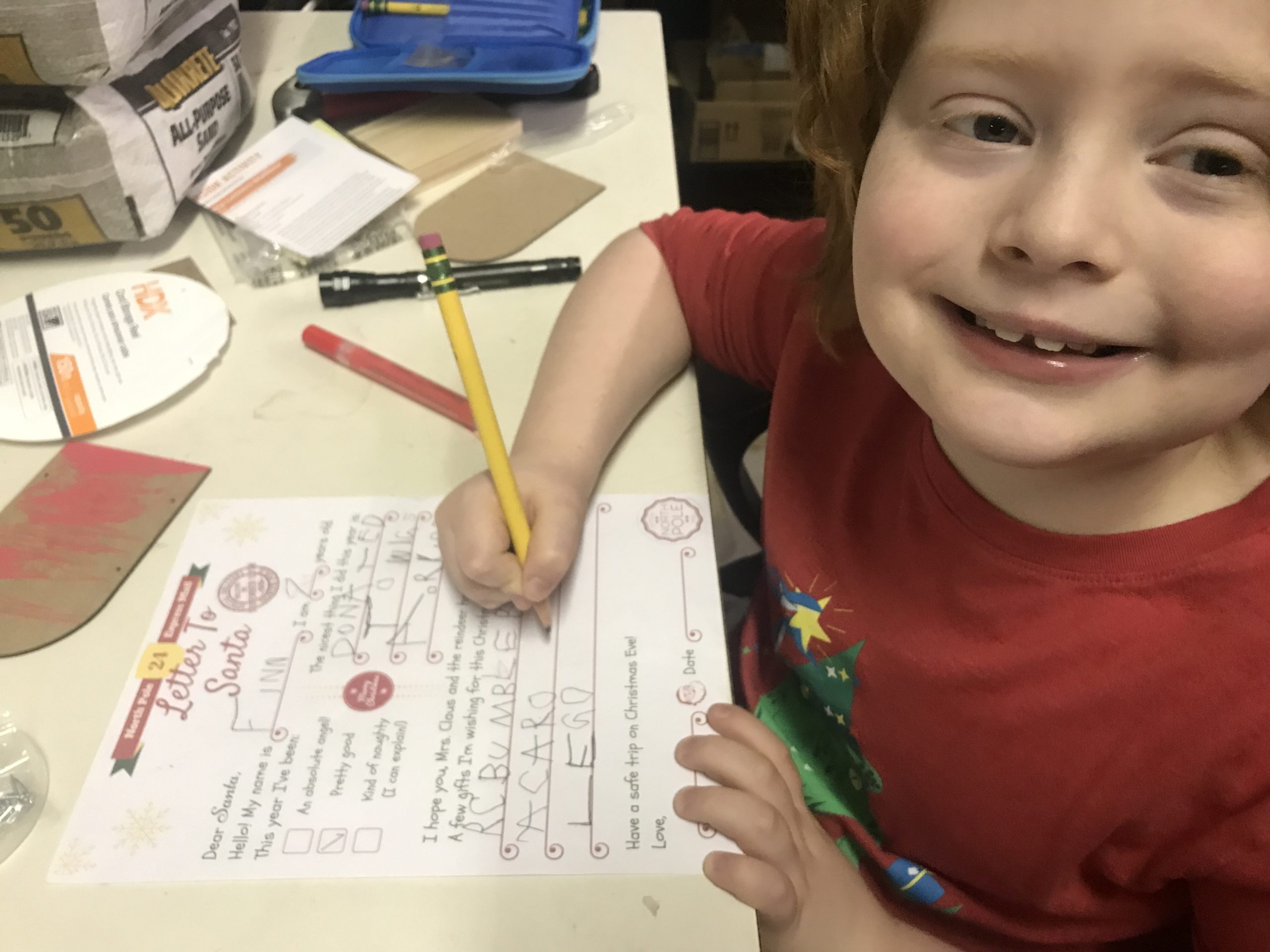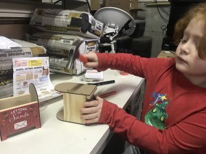 Mom and I built some North Pole mailboxes to hold my letter until we can mail to Santa