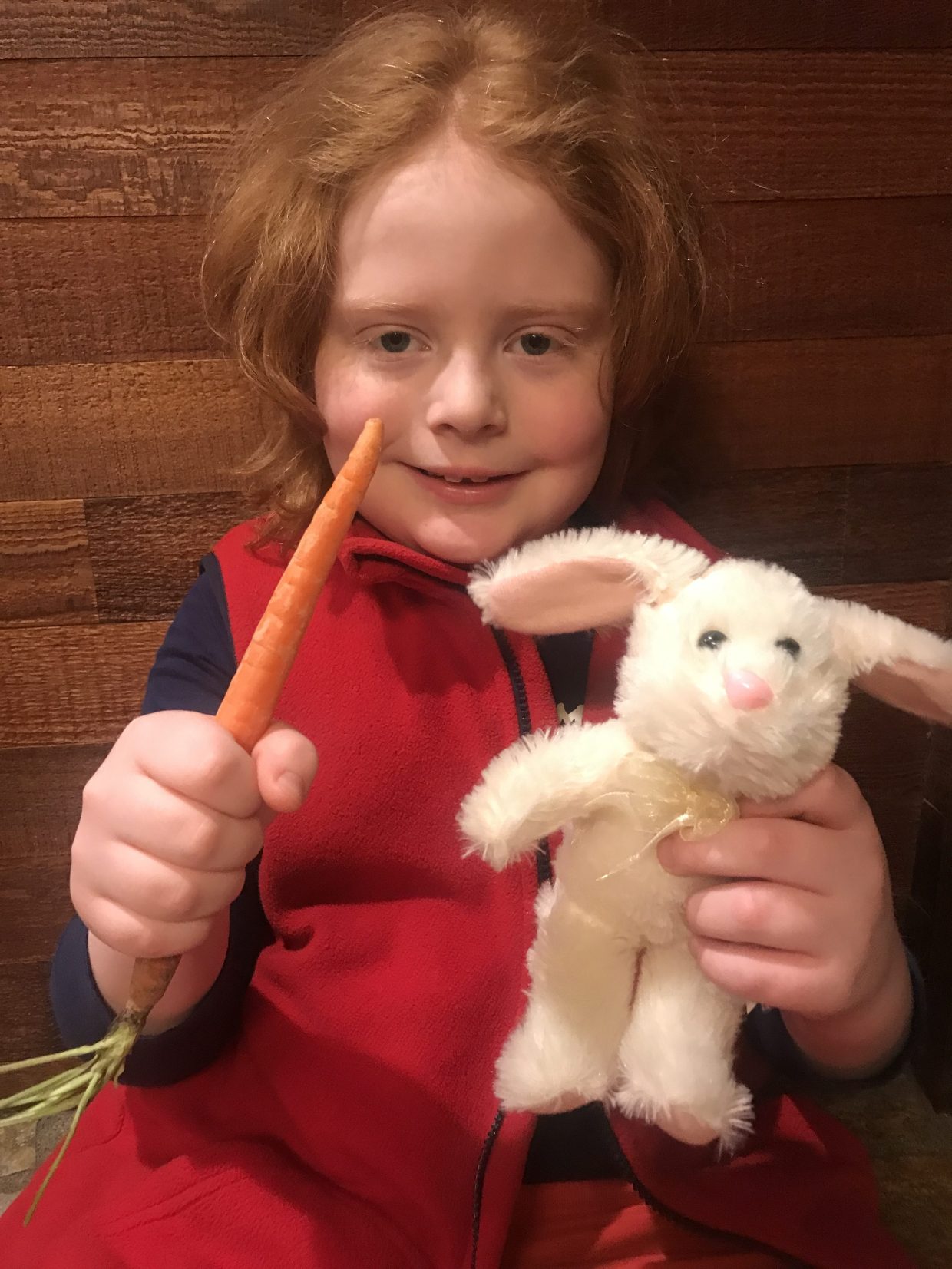 I had to make a commercial for my Martial Arts class talking about the benefits of fruits and vegetables. Did you know that carrots are good for your eyesight? I did!