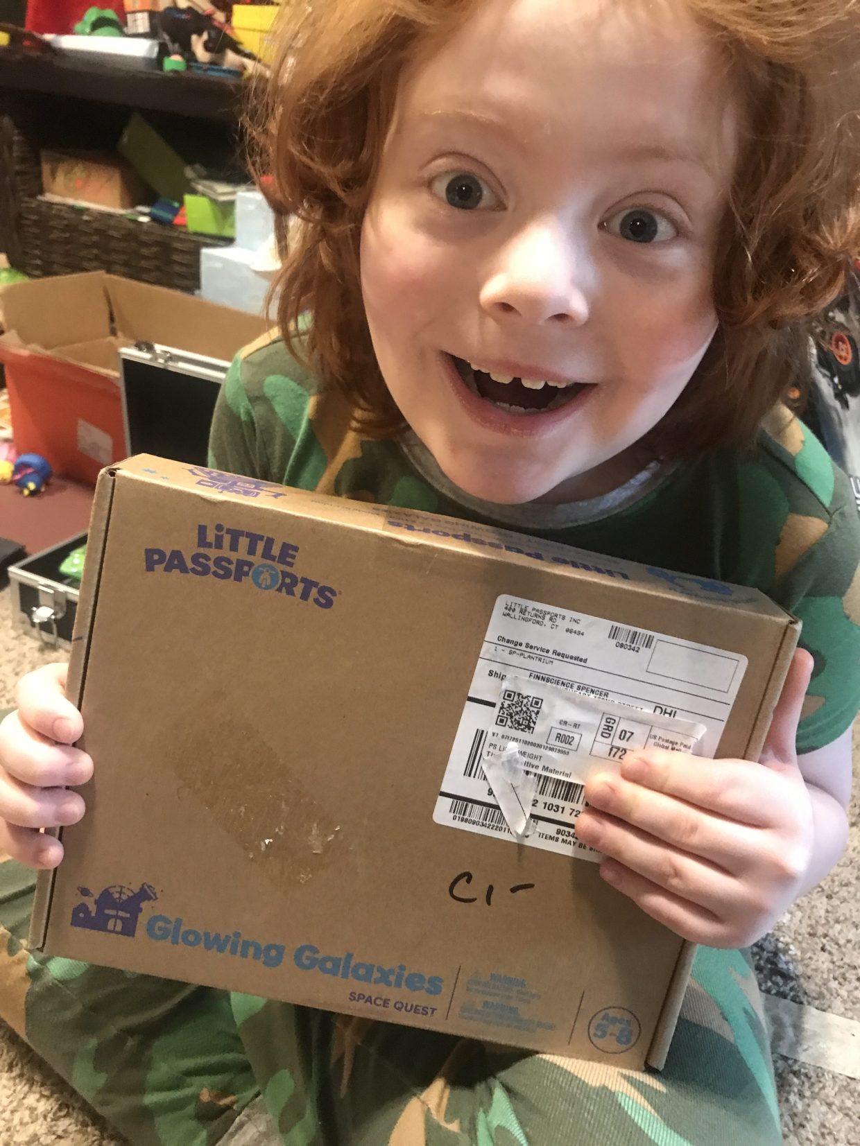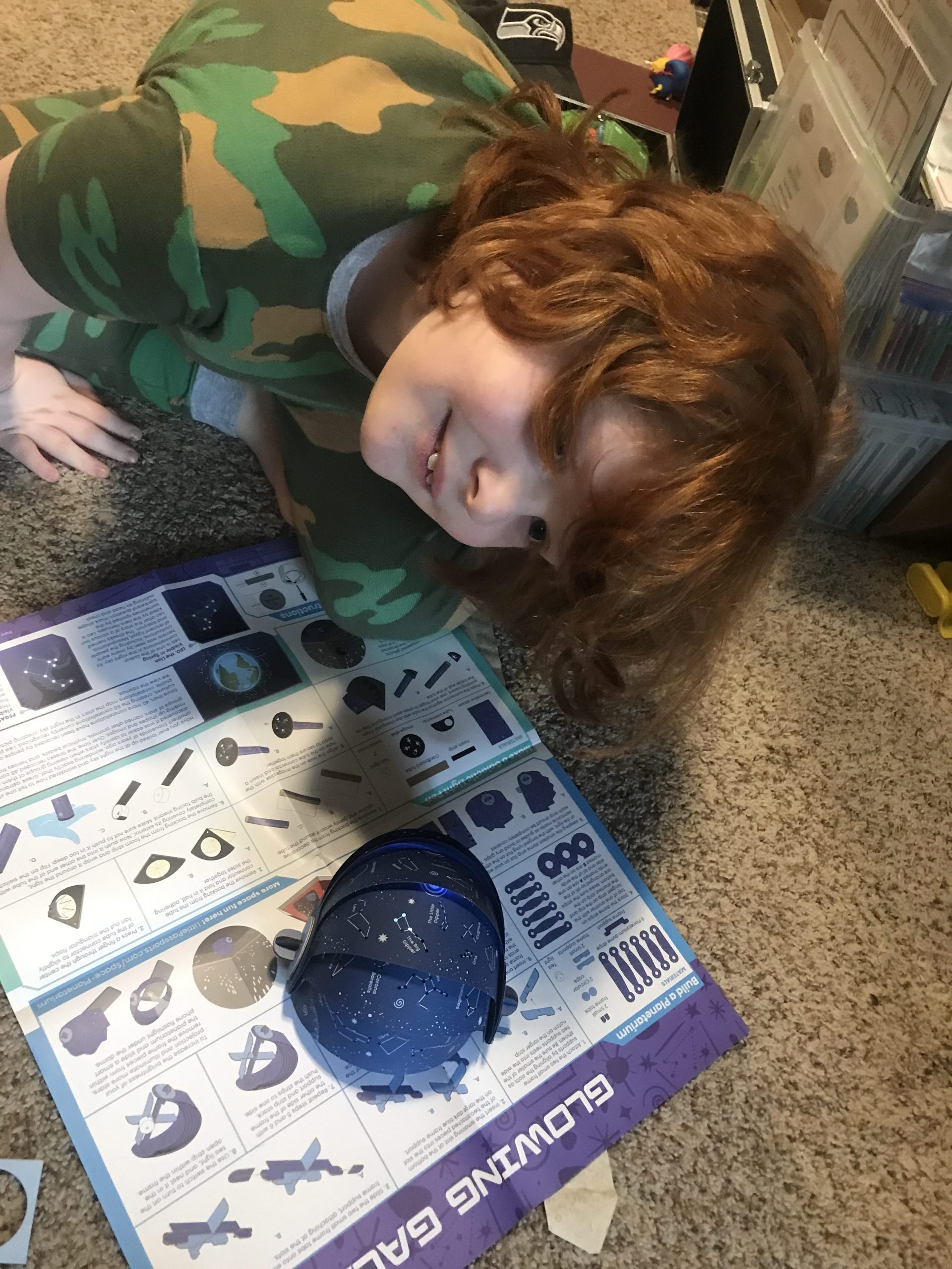 First we made a mini planetarium and then a Galactic Light Pen! The pen makes shapes, like an astronaut and a rocket ship, that you can shine into the “sky” that the planetarium creates!