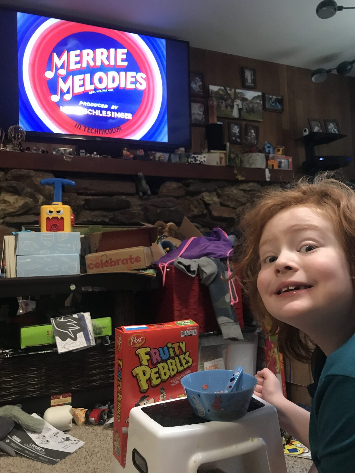 Mom said I could spend the whole day today sitting and watching cartoons she and D-Dad grew up watching… and eating the same kind of cereal!