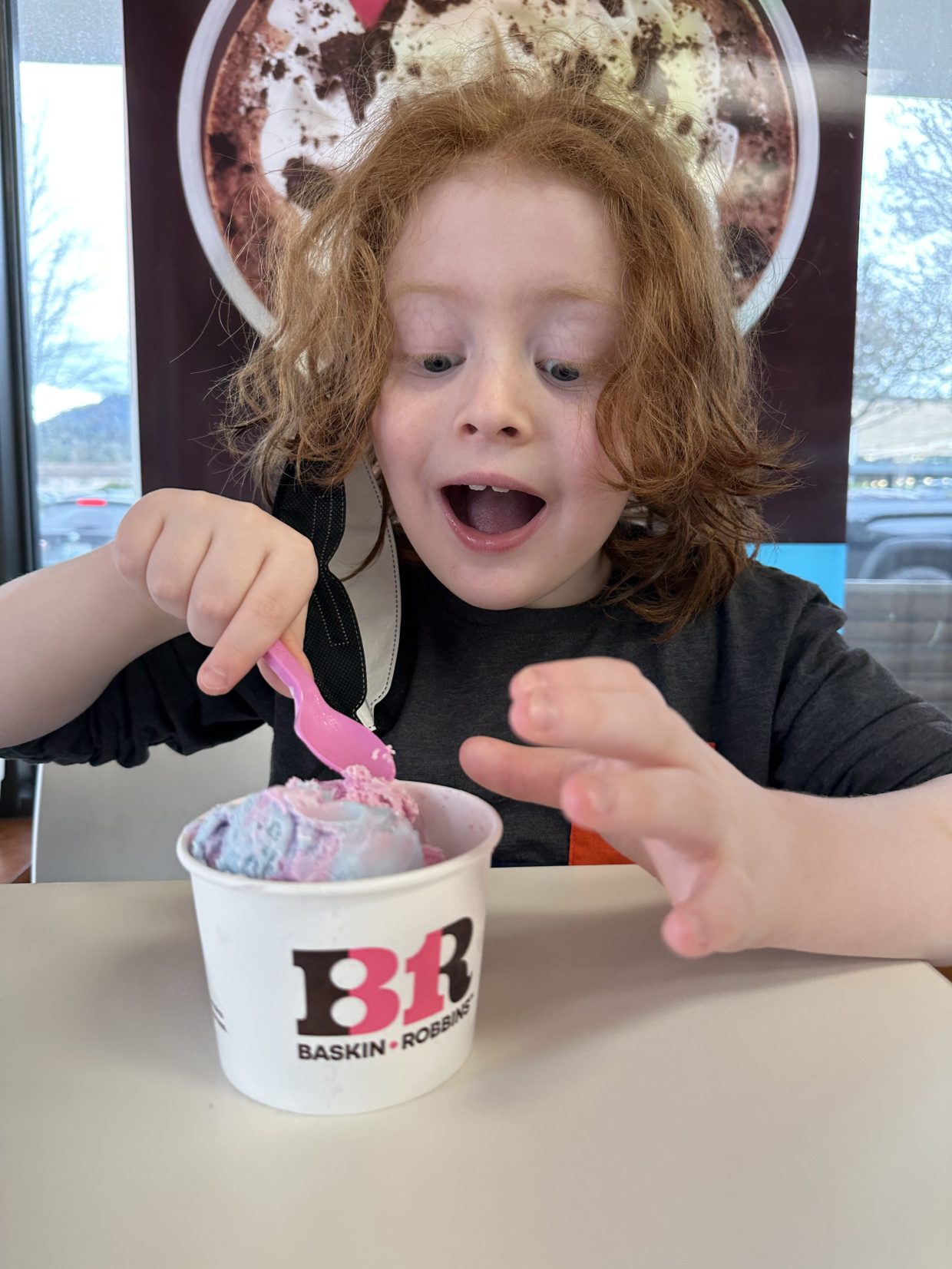 I did really well in swim class today, so Mom got me ice cream as a reward