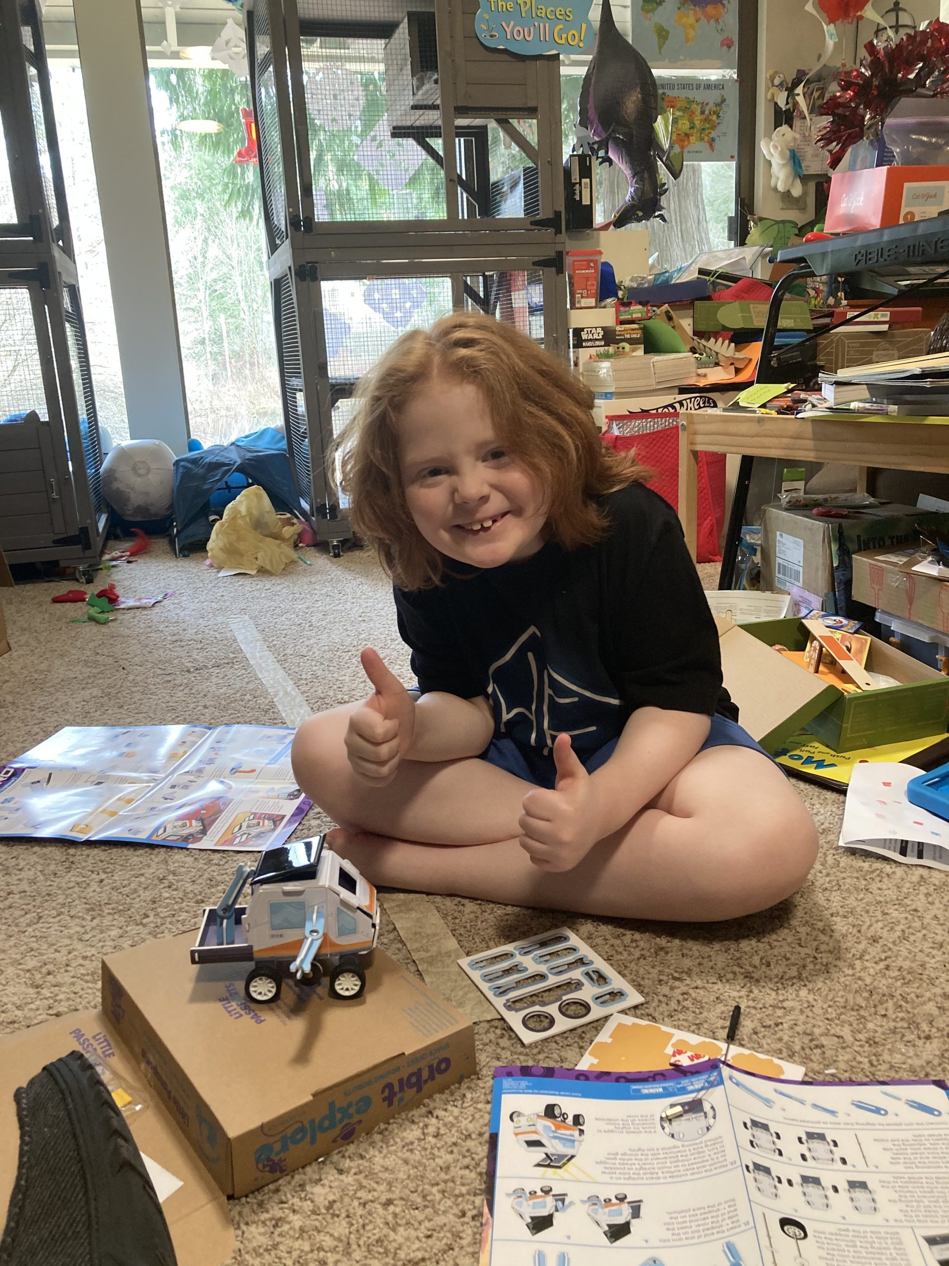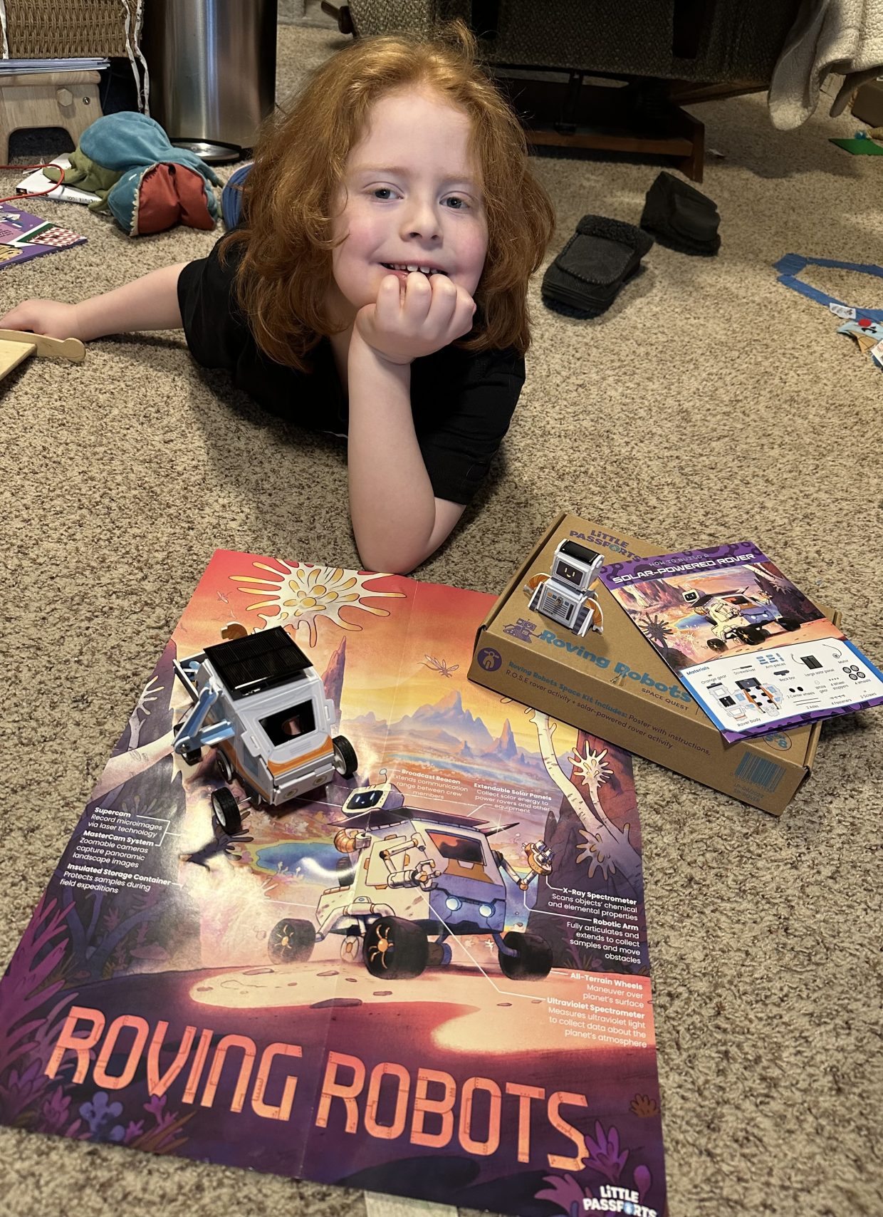 Today’s Little Passport Space kit had us building solar powered robots!