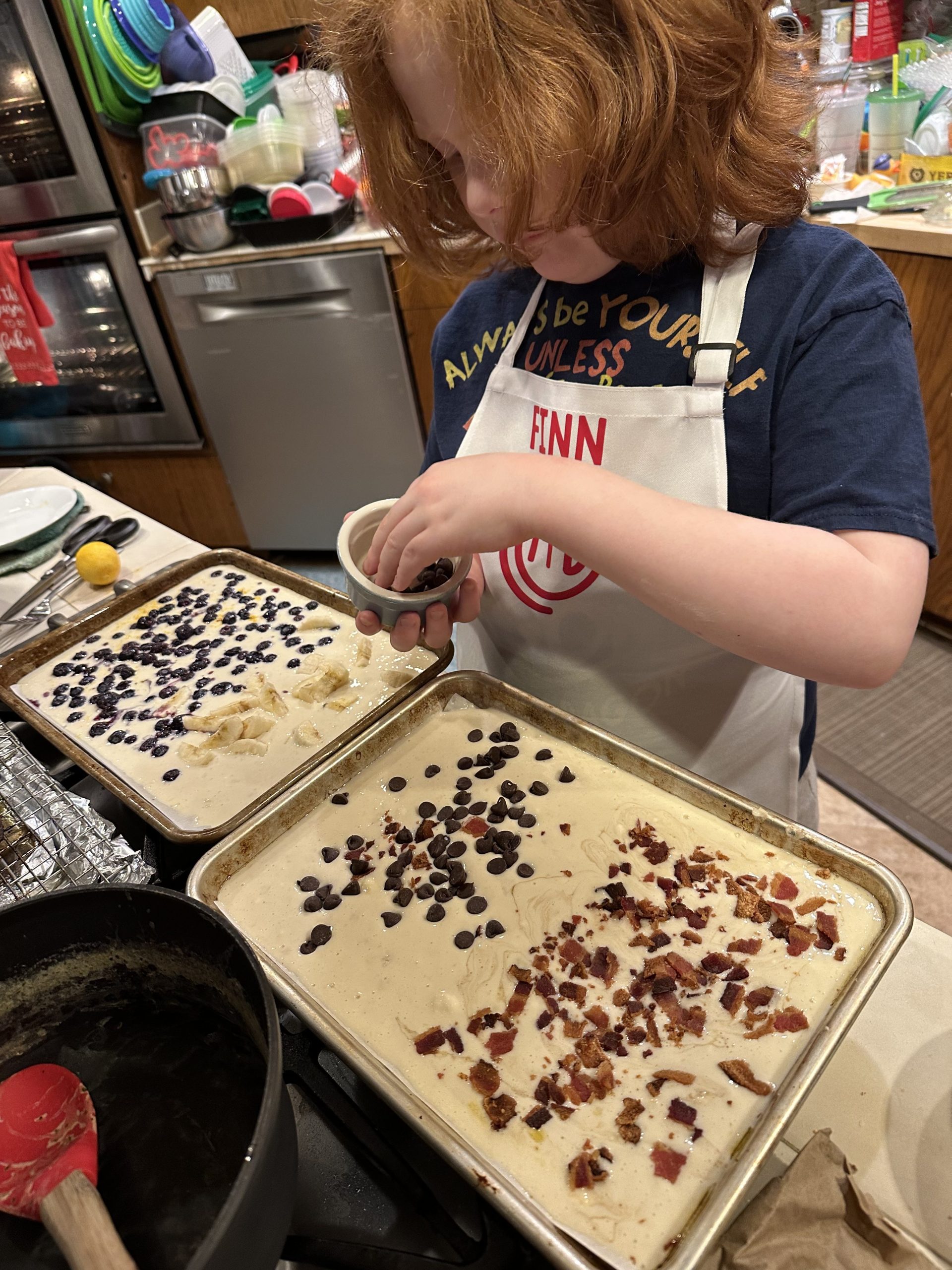 Pan #2 had chocolate chips on half and maple syrup and bacon on the other!!!