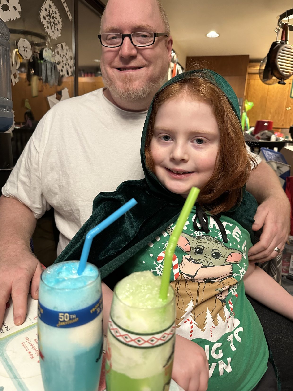 We had Bantha Floats (the blue ones) and Grogu Floats (the green one) to celebrate Star Wars Day!