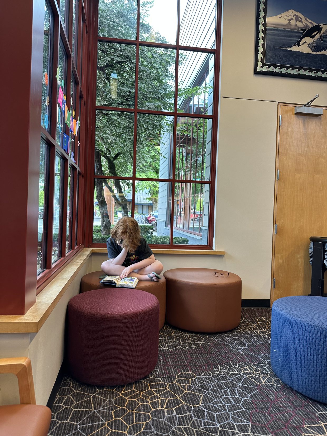 Your library looks very much like Malaga Cove Library where I spent many wonder-FULL hours growing up!!!!!…. Except that we had big leather chairs and Eucalyptus trees instead of what I see out your windows. It is a wonderful place to spend LOTS of time……