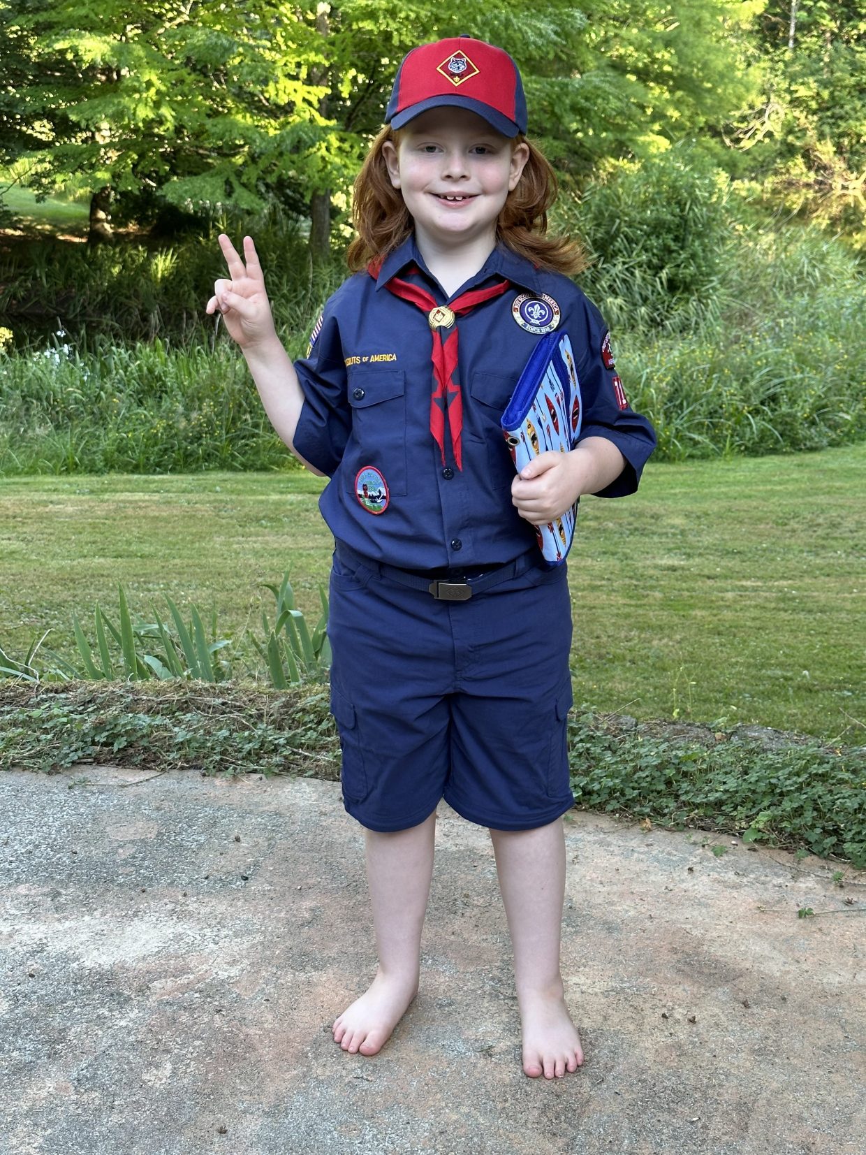Finn, an official Cub Scout, ready for action!!