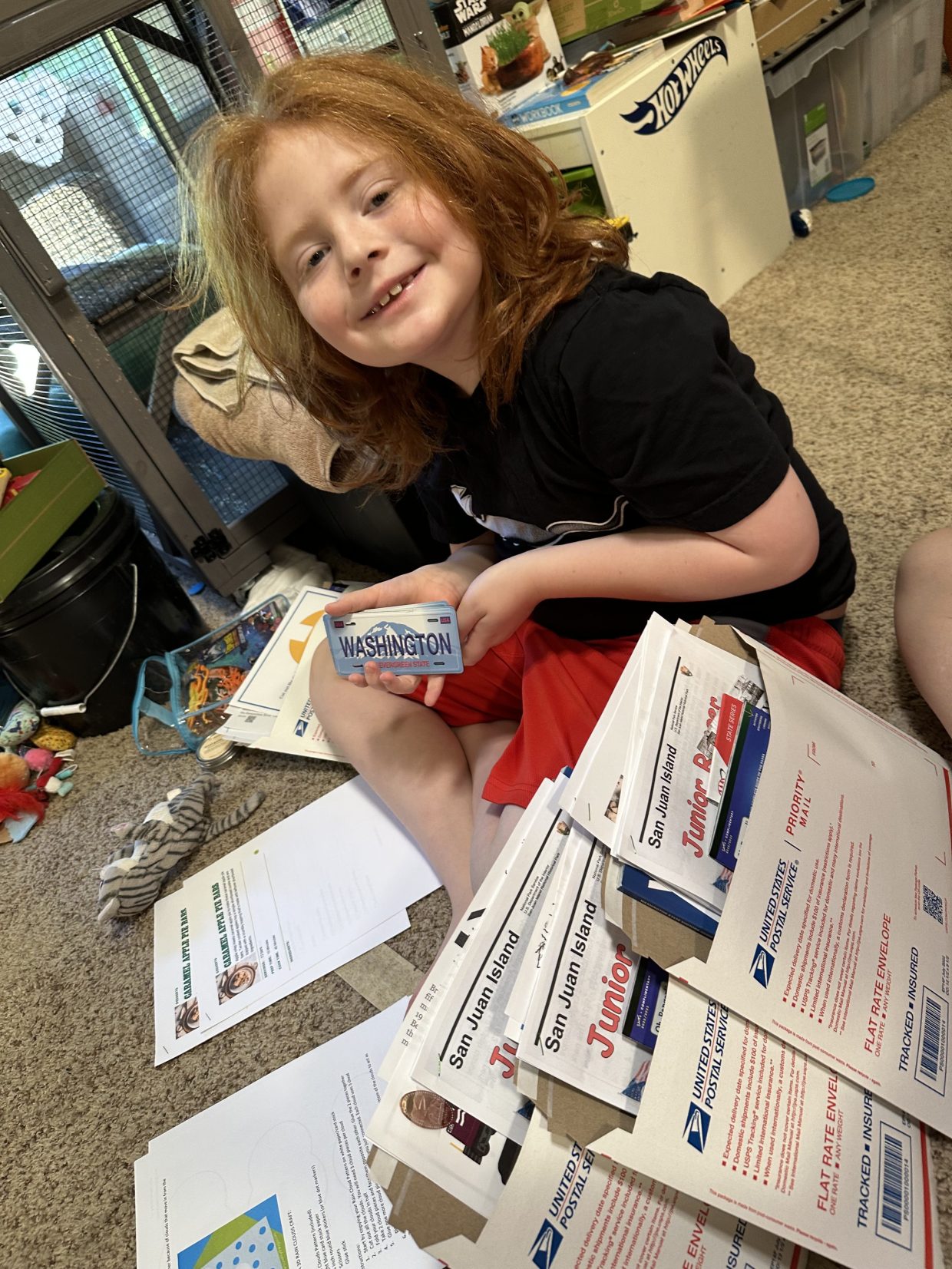 I signed up with a whole bunch of other homeschool families across the US to swap information about our home states. So I’m sending information about Washington to families in Nevada, Colorado, Florida, and Indiana, and I’ll get packages back from 4 different states! I’m also going to make up some packages about Hawaii because we know a whole bunch about Hawaii too!