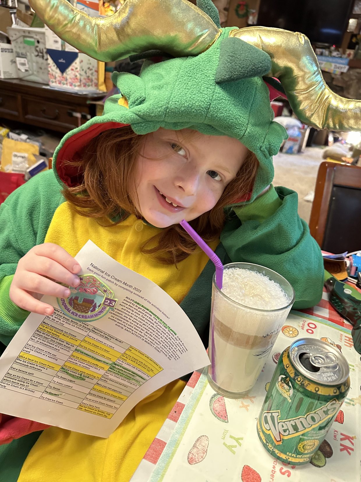 I earned 17 points and this cool patch! Plus we got to eat ice cream a whole lot this month, thanks to President Ronald Reagan who made National Ice Cream Day a holiday in 1984!
