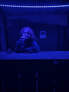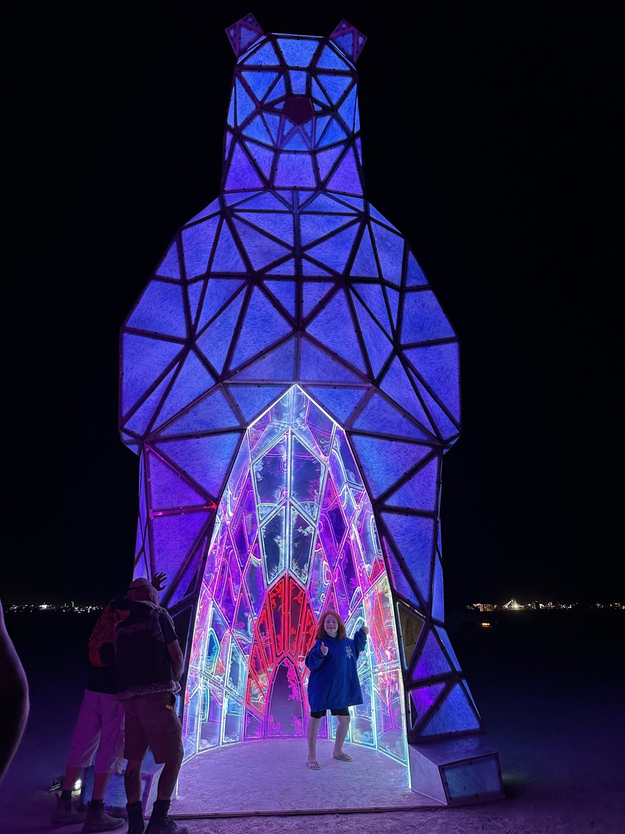 This was Ursa Major (Ursa Minor was across the way, facing her). I look happy, because it was really neat, but each of those tiles inside her tummy show animals that have been placed on the endangered list or have become functionally extinct in the last year.