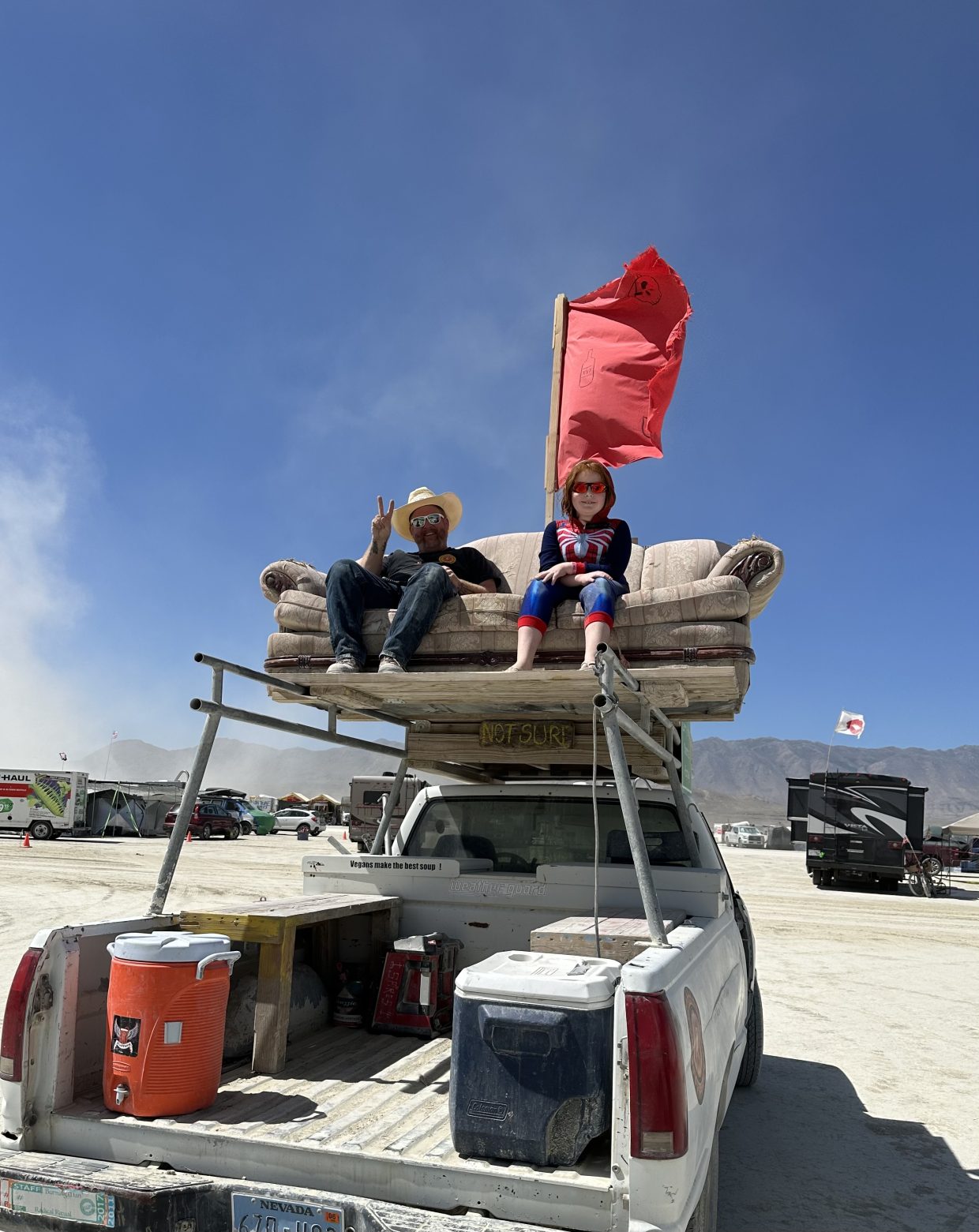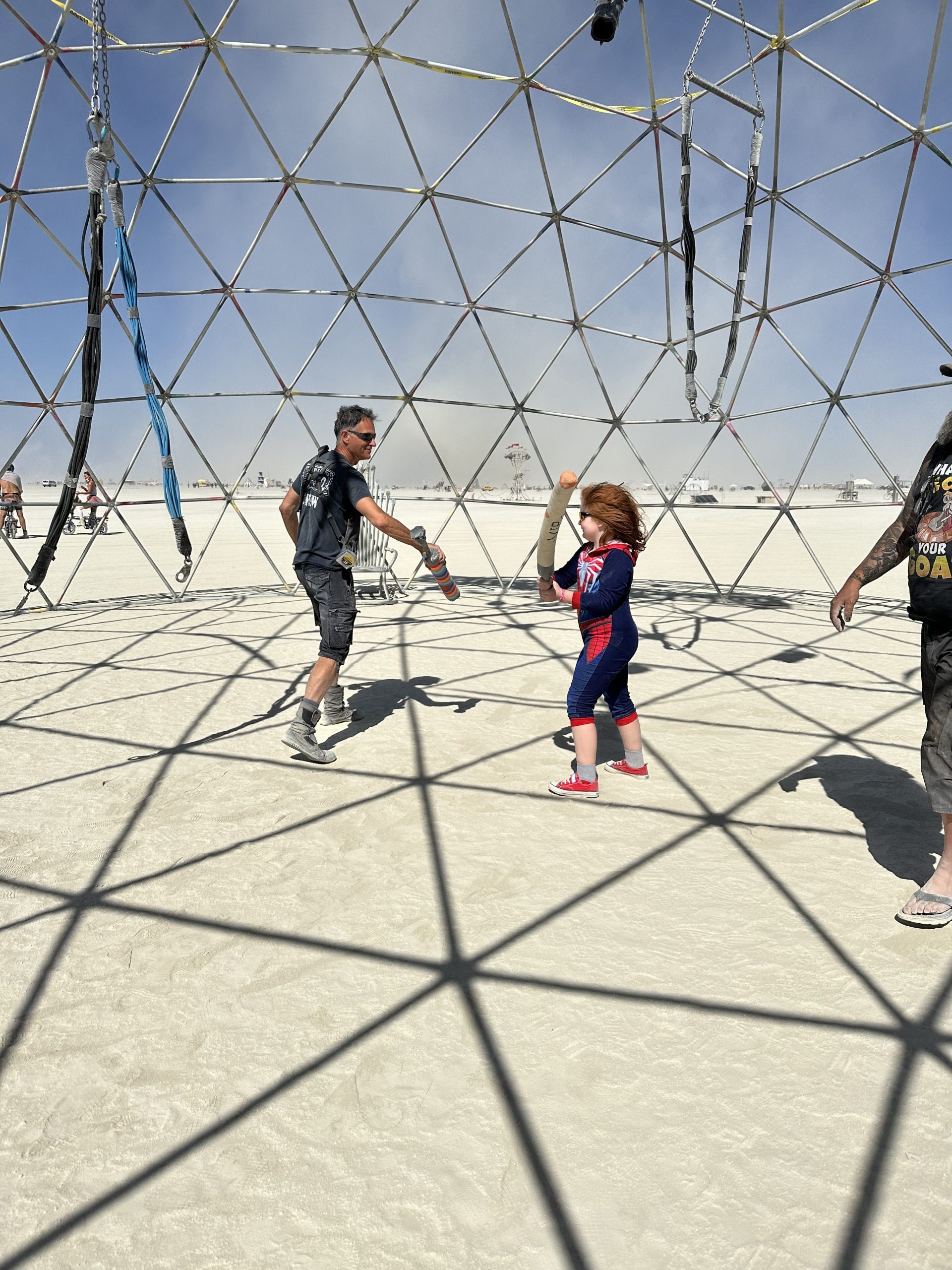 Went for a ride on an art car with Auntie SamX and Uncle Dylan Blackthorne, then Uncle Peter and I battled it out in Thunderdome (in anticipation of Kidsville heading there in a couple of days)