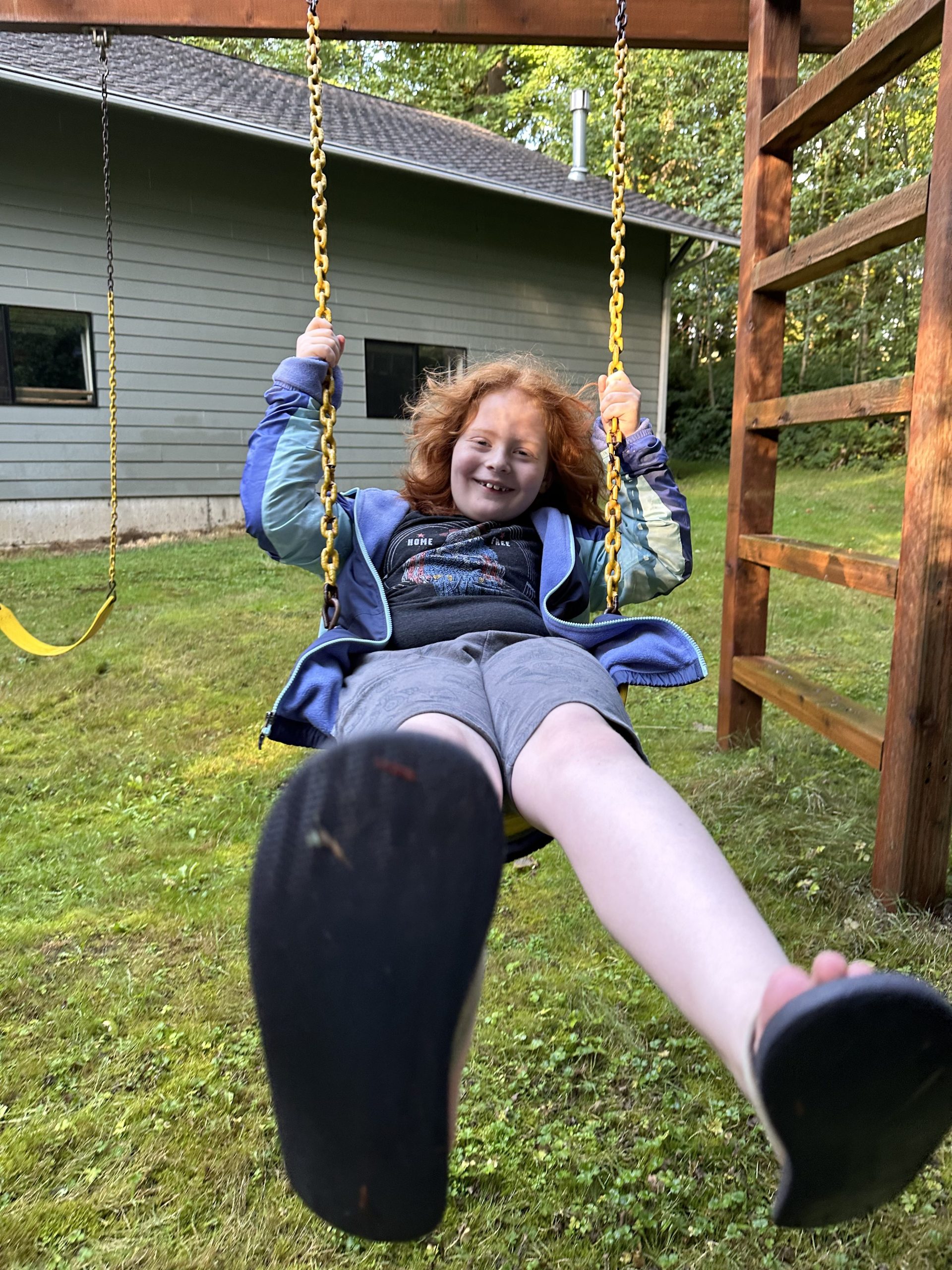 Looks to me that you should shorten those chains so your feet don’t get bumped!!!! You are getting taller, you know!!!