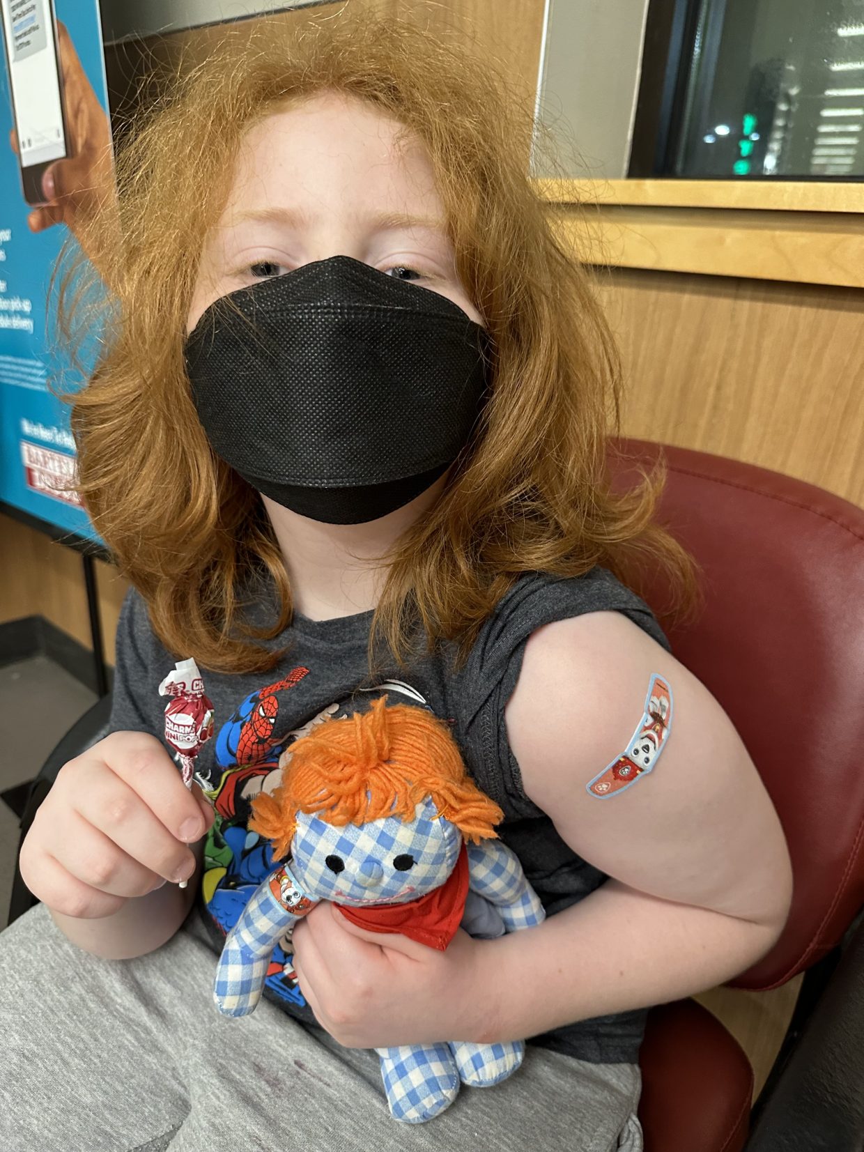 Getting our next round of COVID shots! Matching band-aids and a lollipop too!