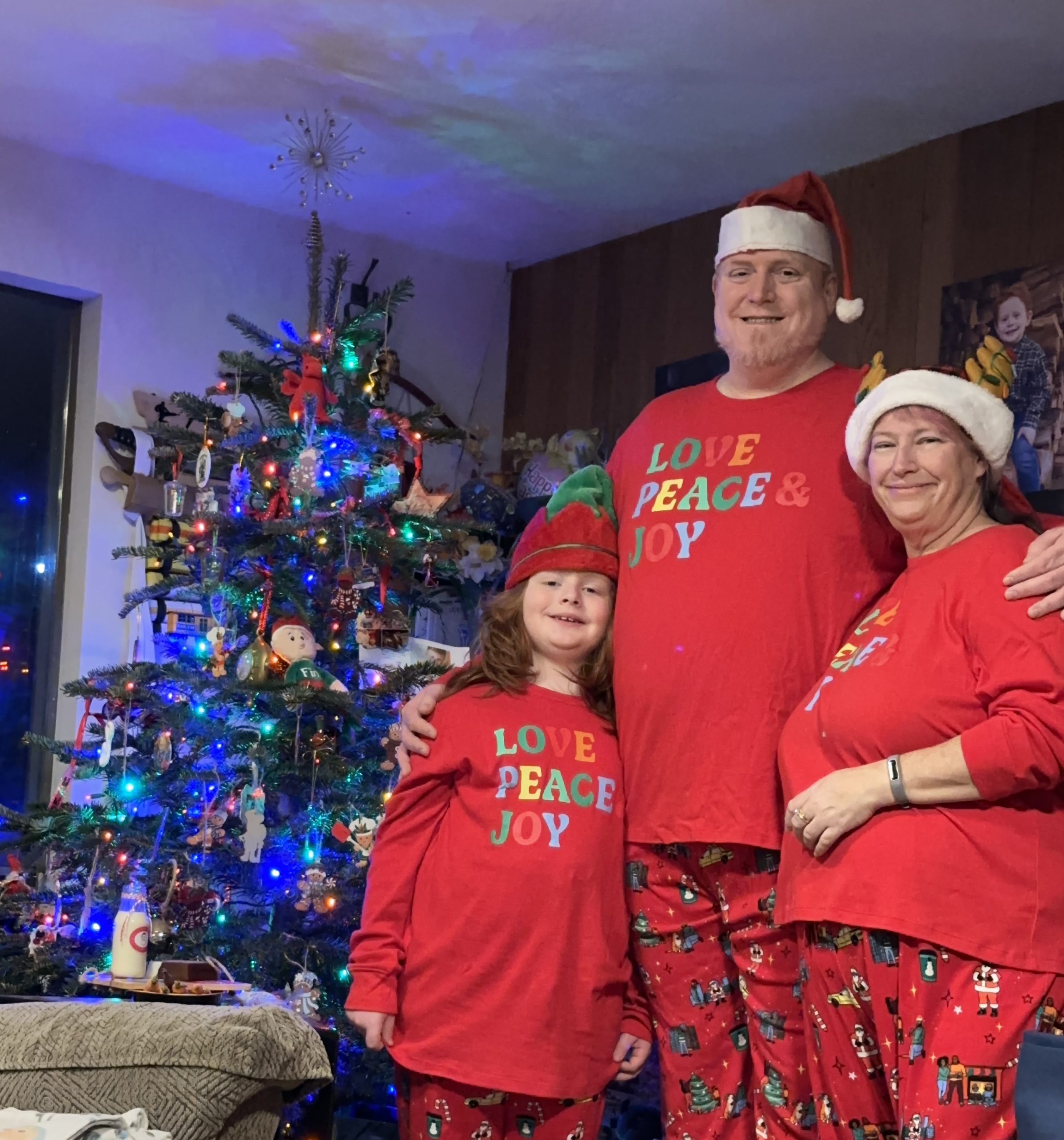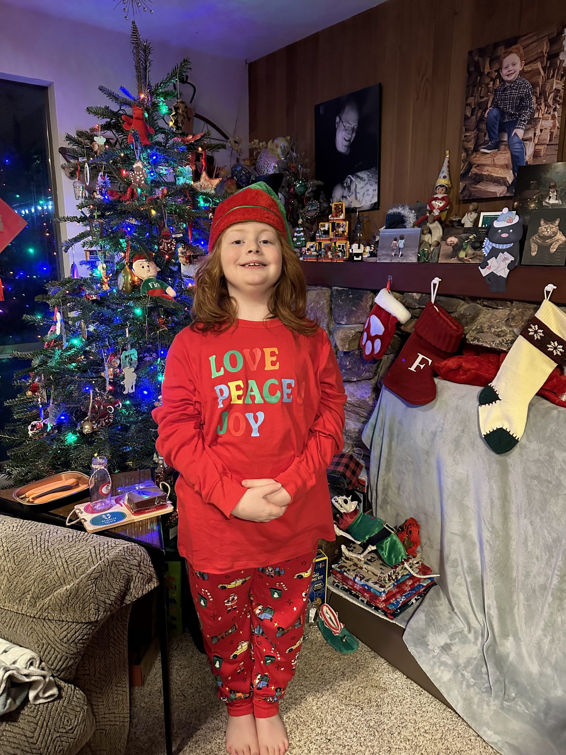 We put out eggnog & cookies for Santa and carrots for the reindeer, and we’re all in matching jammies!