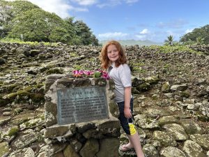 Left a gift of lilikoi wrapped in ti leaves to show respect And later visited and had dinner with Auntie Lucile who is turning 104 this week!