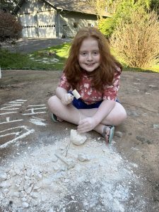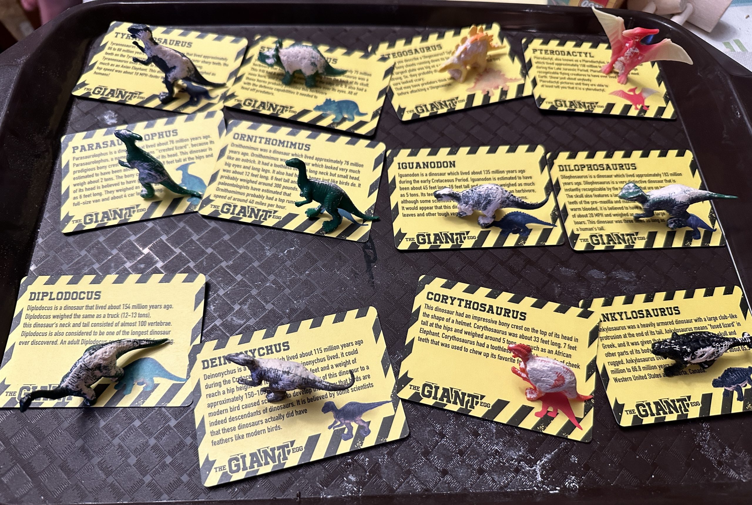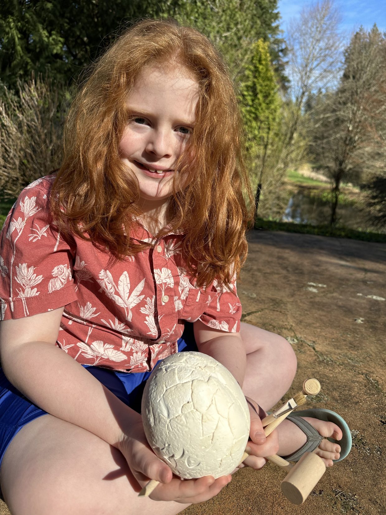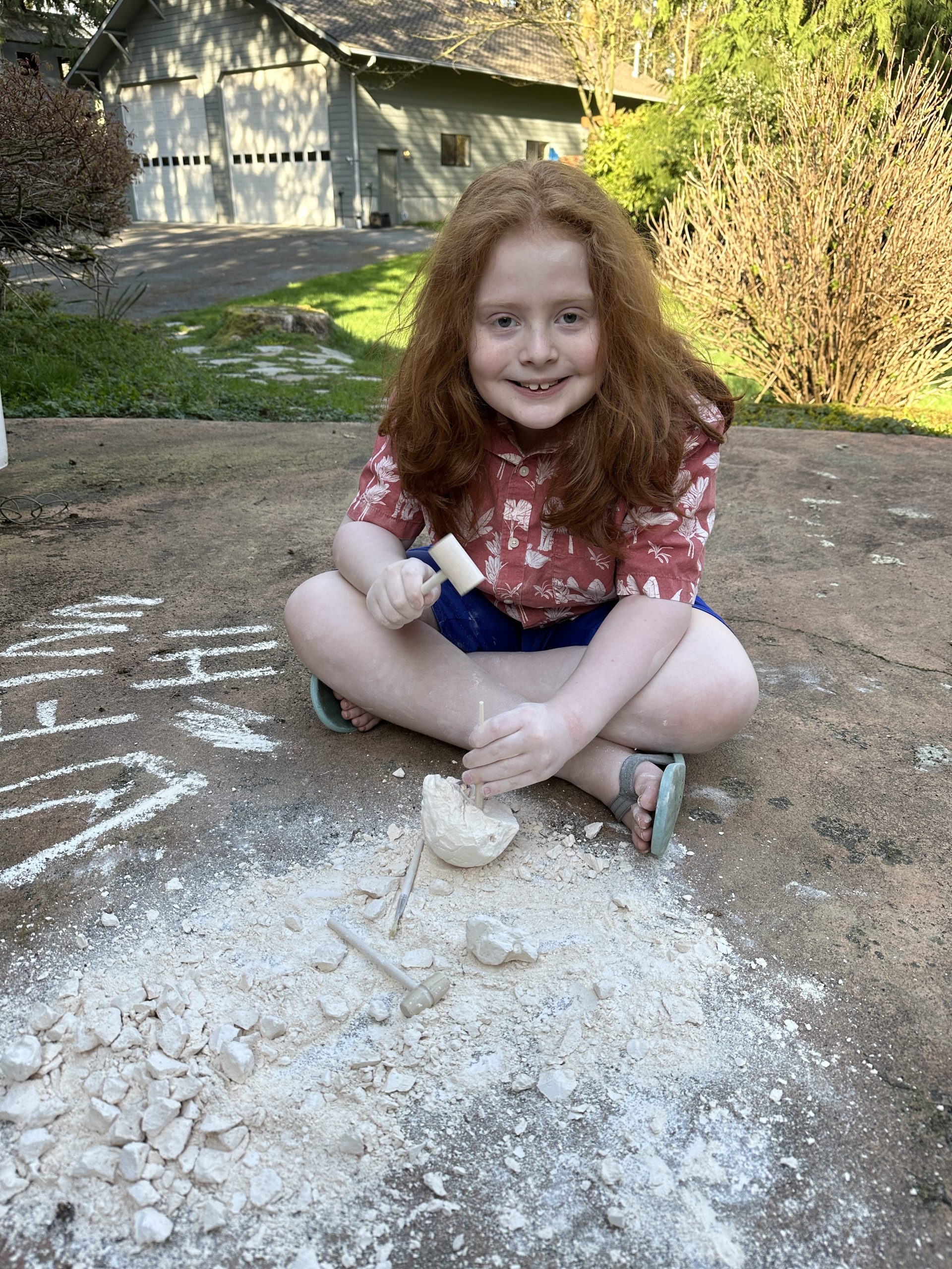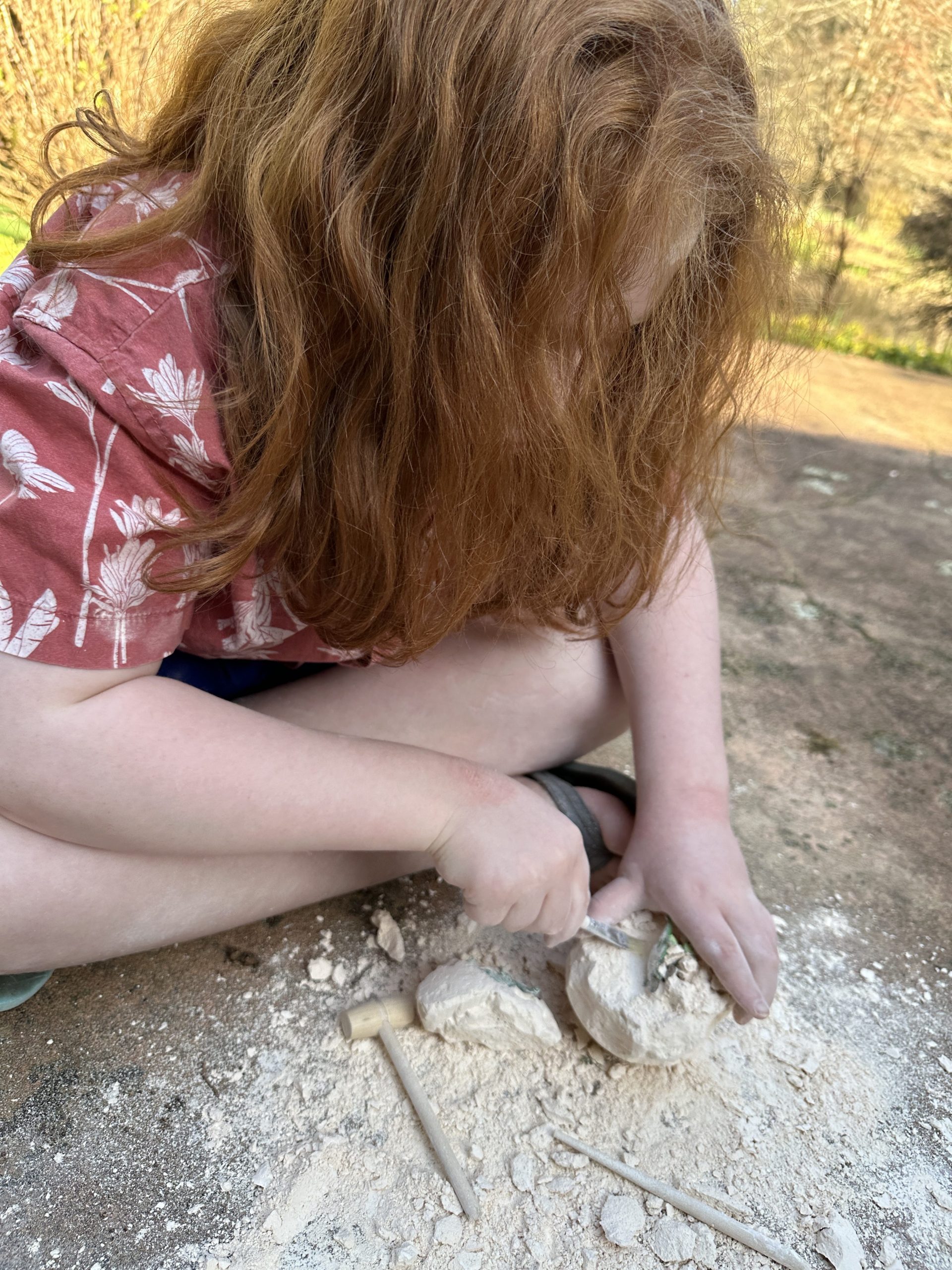Let’s see what exciting things are in this dino egg! Then gently sweep the dust away….