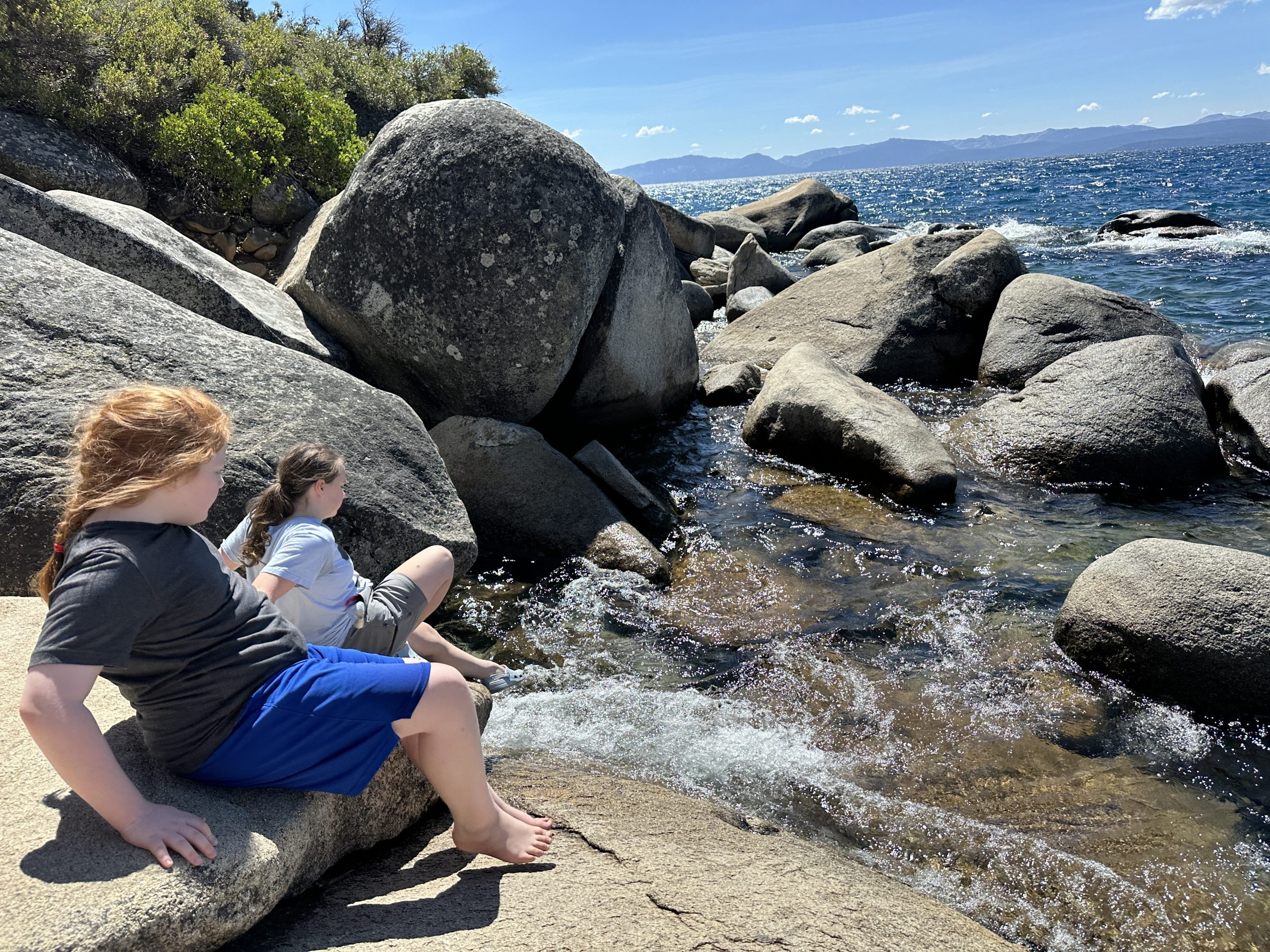 Amelia and I took a break from the Black Rock Desert and went to Lake Tahoe to earn our Jr Liminologist badges. Then went down to the lake itself to stick our toes in…