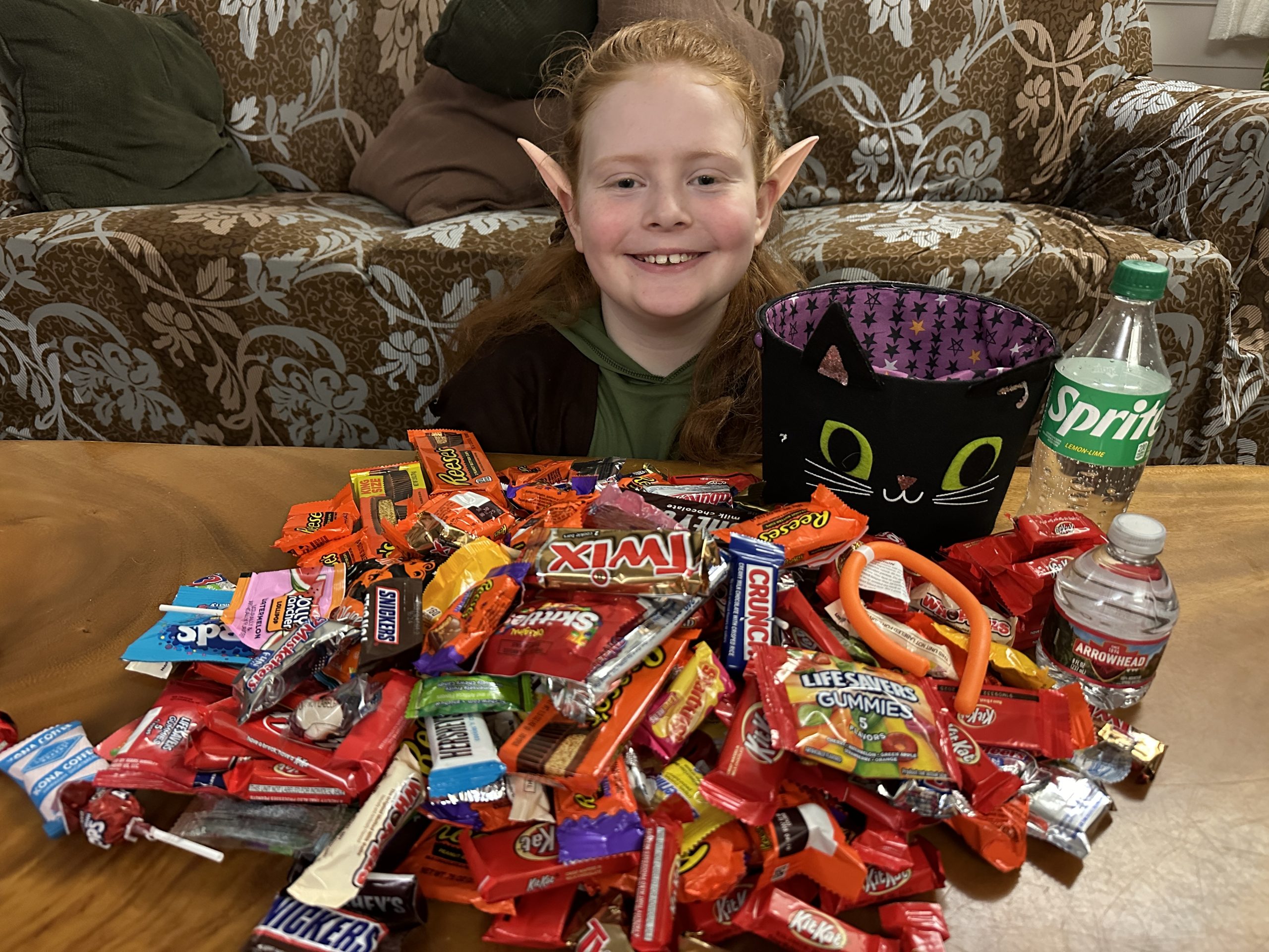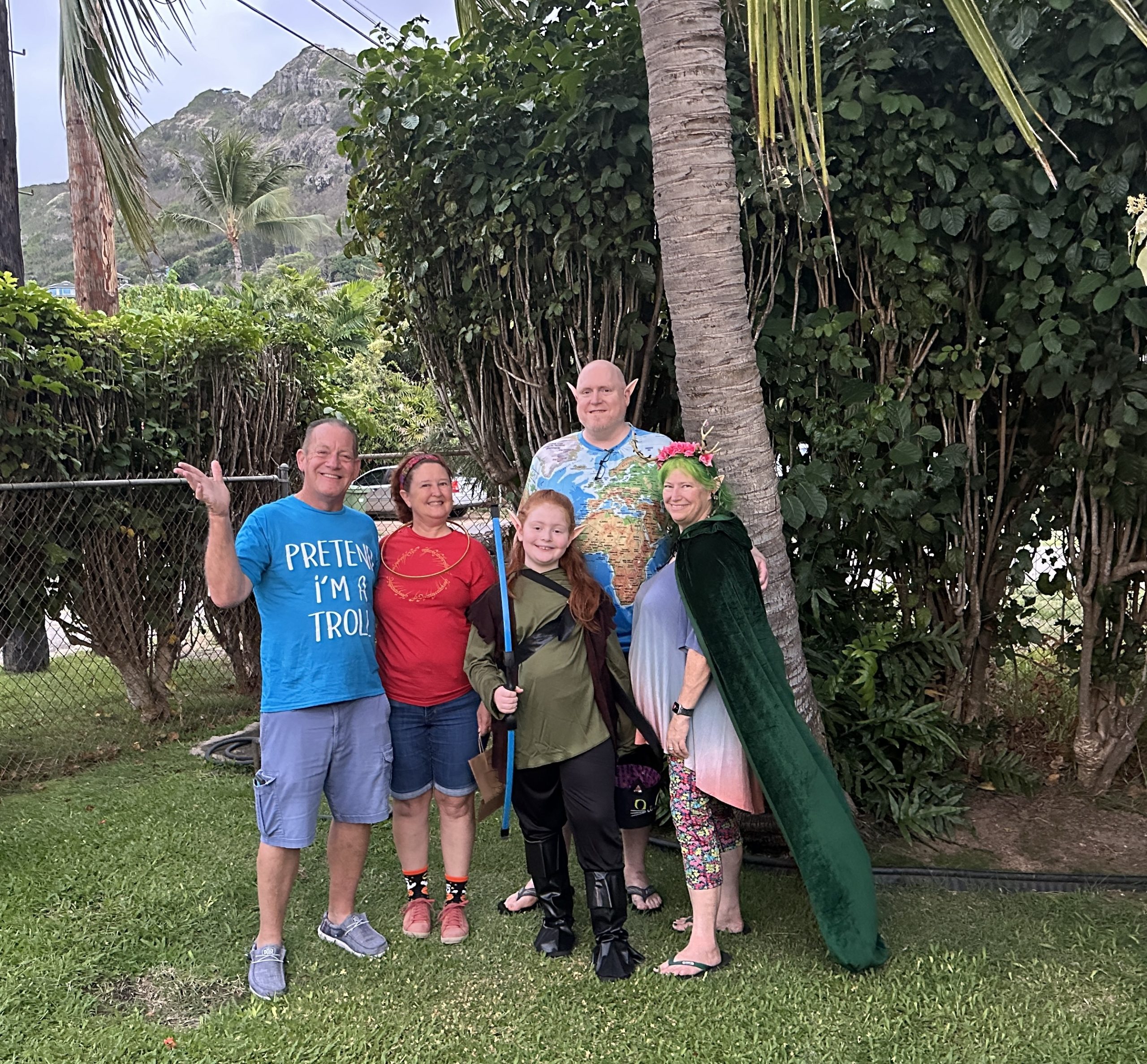 Auntie Deb and Uncle Don dressed up to join us for trick/or/treating too