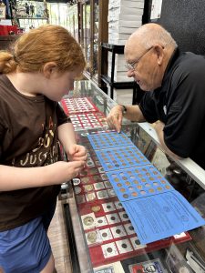 Stopped by the coin shop to learn about coins and get my 1909 quarter appraised. Mr Paul told me a whole lot of interesting things!