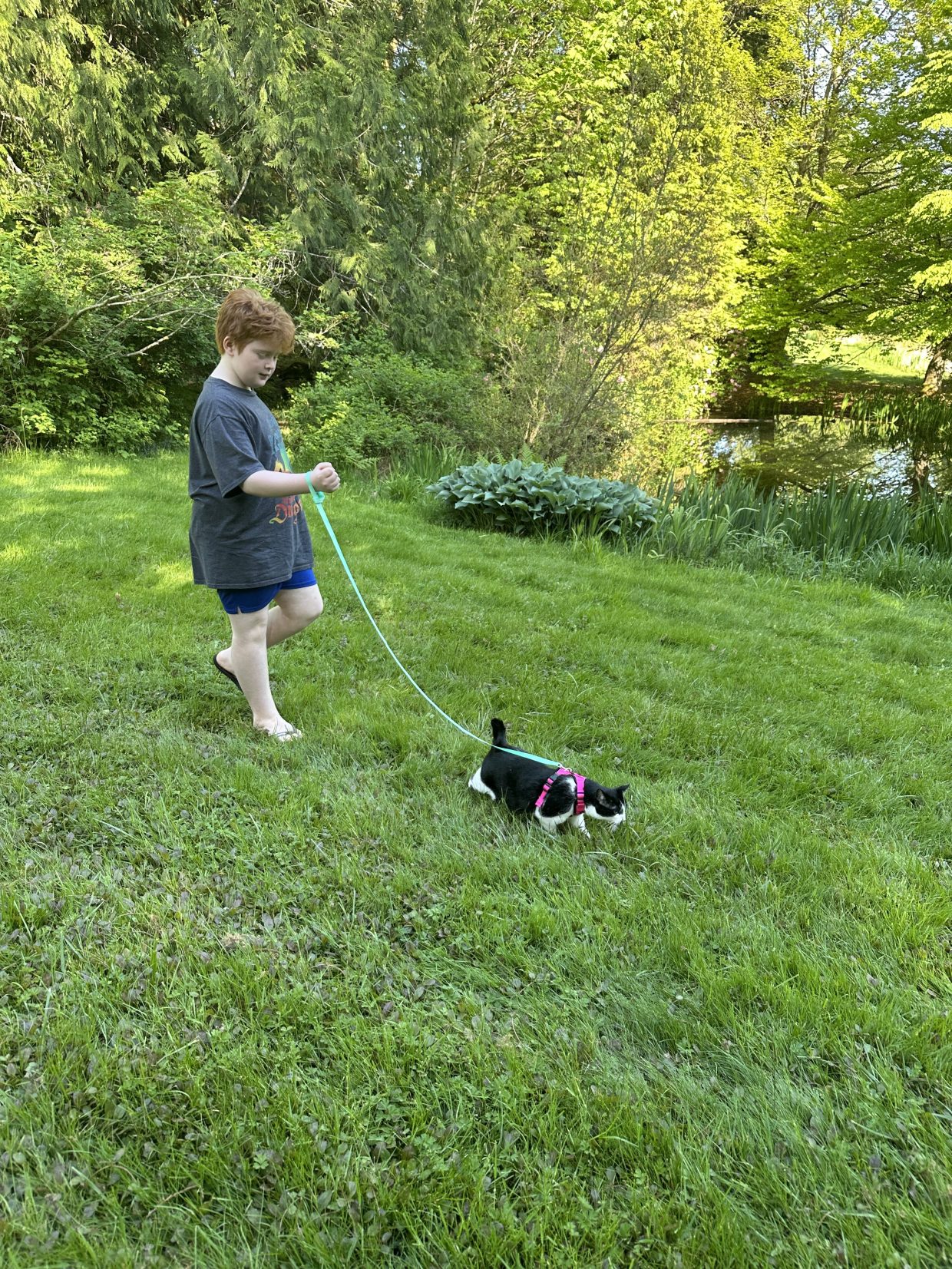 Just a boy and his cat out for a walk