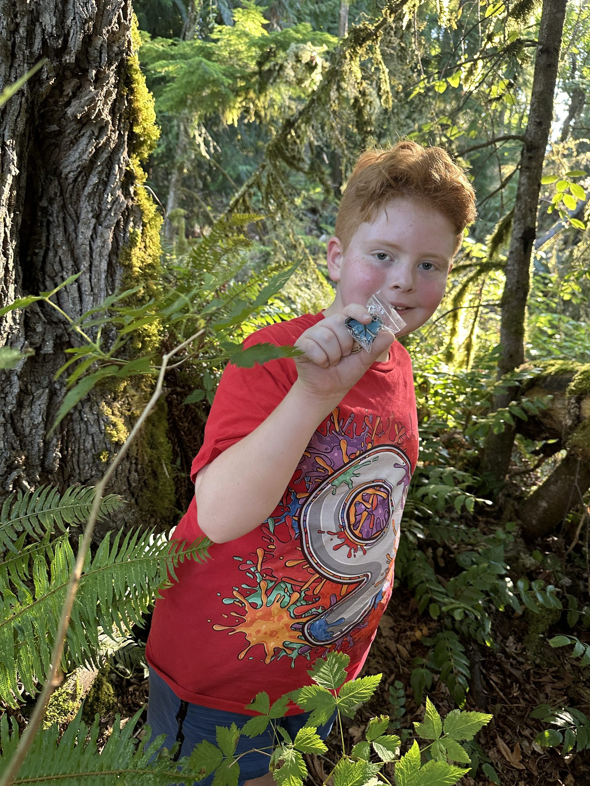 We found a “travel bug” – a trackable butterfly that we “let go” in a different geocache
