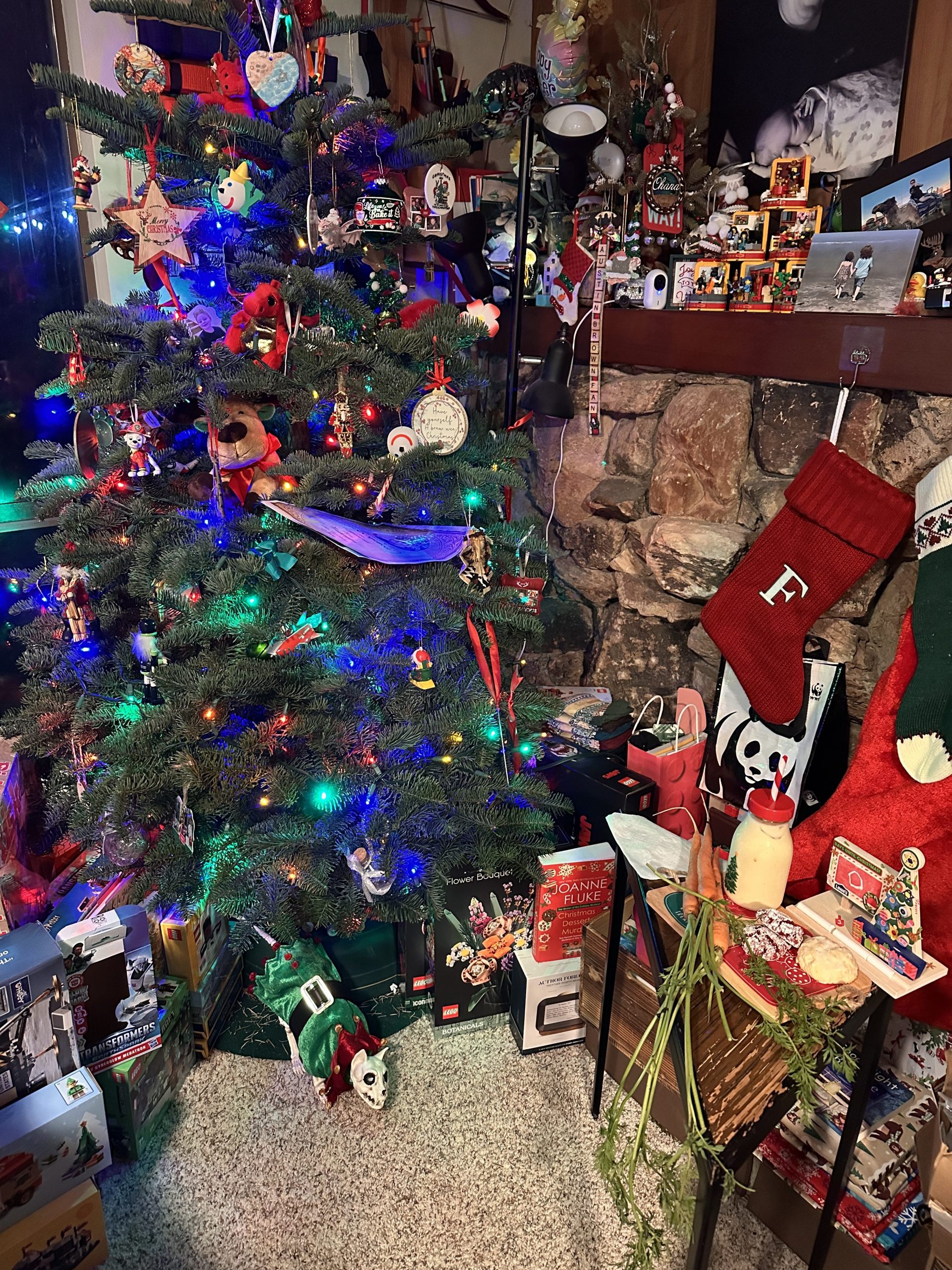 Stockings are hung. Cookies, eggnog, and carrots are out, as well as an orange in case a reindeer wants one!
