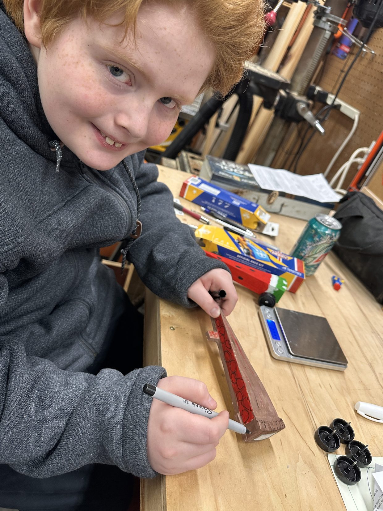 Putting the final touches on my Pinewood Derby car